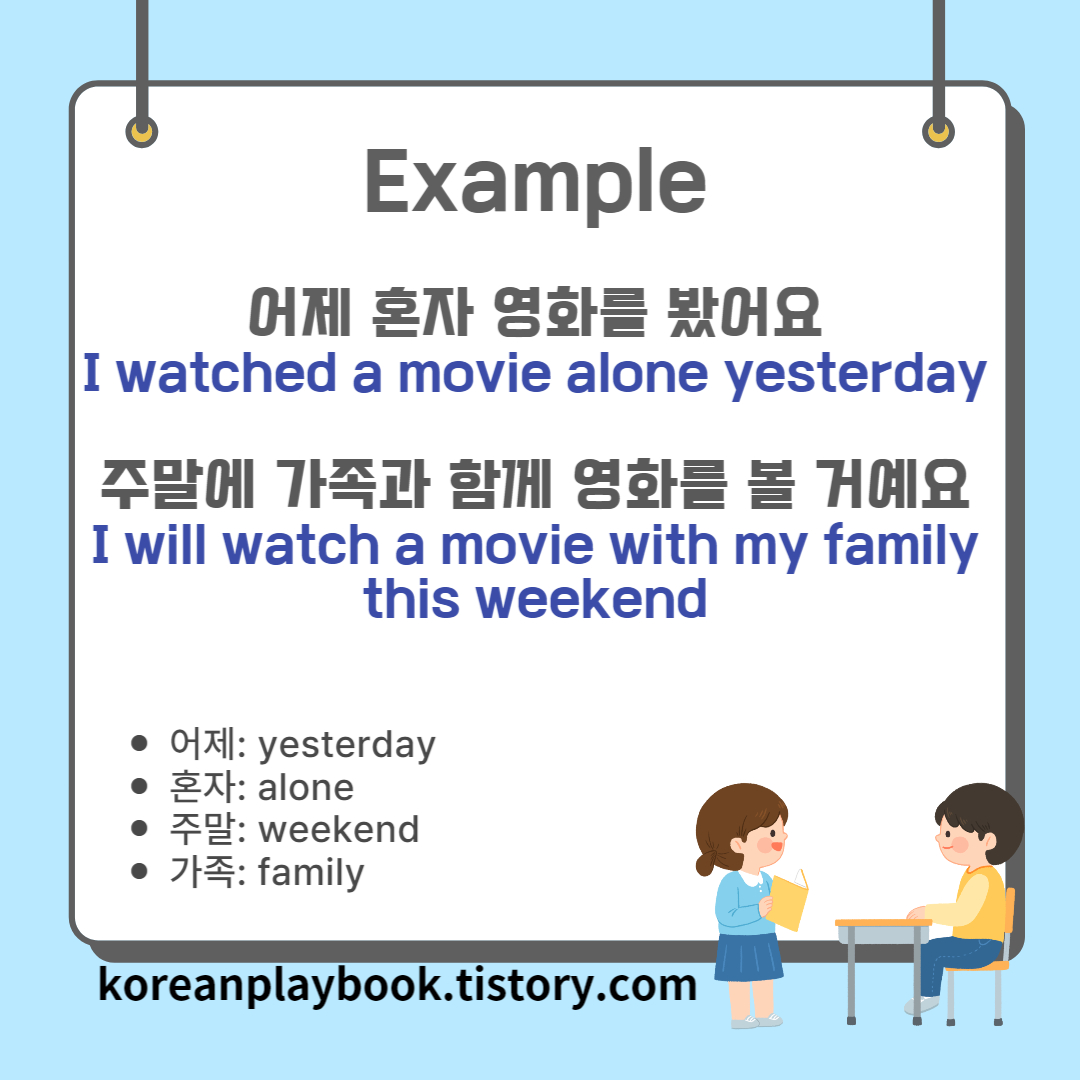 어제 혼자 영화를 봤어요. (I watched a movie alone yesterday.)